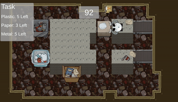 A turn-based combat adventure where players face off against trash-hoarding rats. Exploring shopping zones and collecting waste, players must recycle while battling enemies in a unique twist on the jam’s theme.
